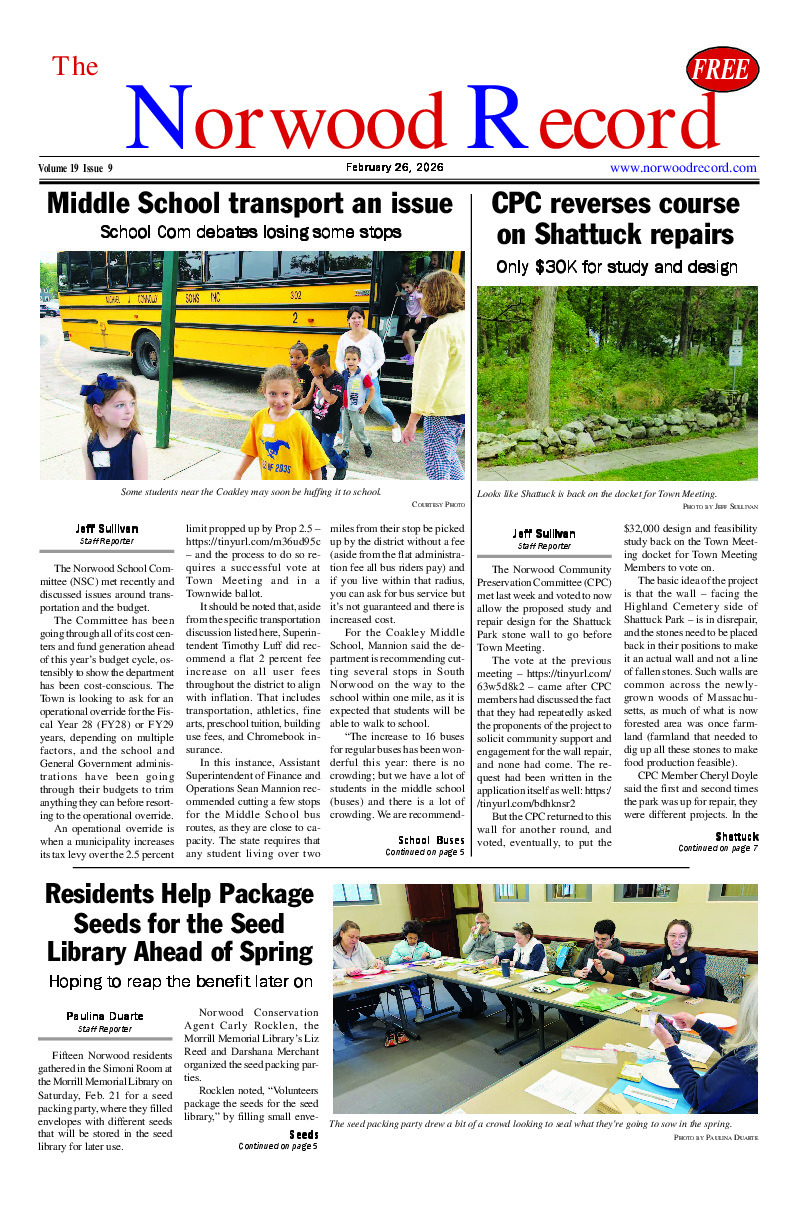 Concerned citizens from Norwood and surrounding communities packed a Boston-bound bus last Thursday afternoon. They held onto signs of support, optimism and faith in the legislative process.