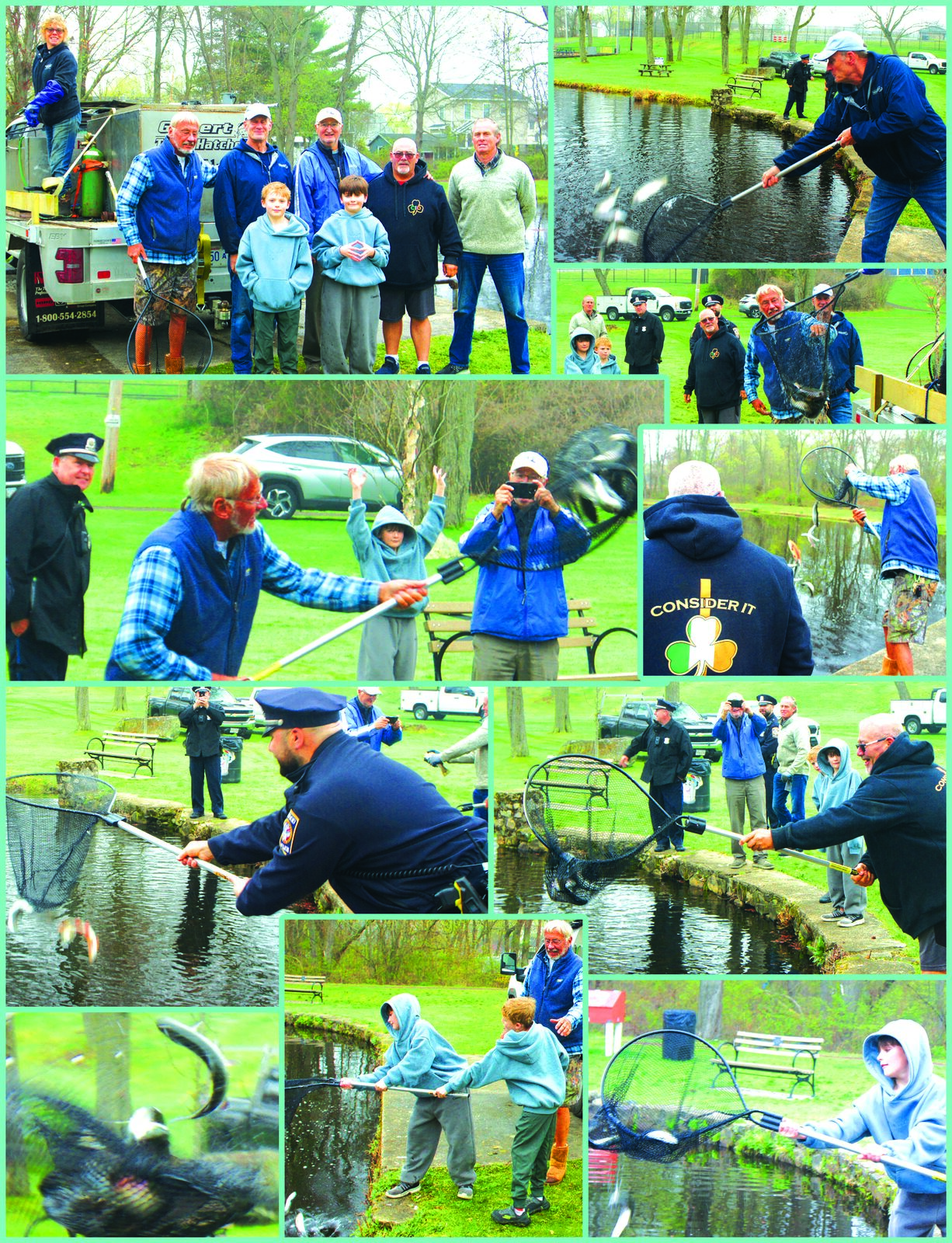 He and several volunteers - and two members of the Norwood Police Department - stocked the pond with fish from Darlene's truck (Gilbert Trout Hatchery, Plymouth), throwing in some monster Brook Trout, Tiger Trout, Brown Trout, Rainbow Trout, and of course, the Golden Trout.